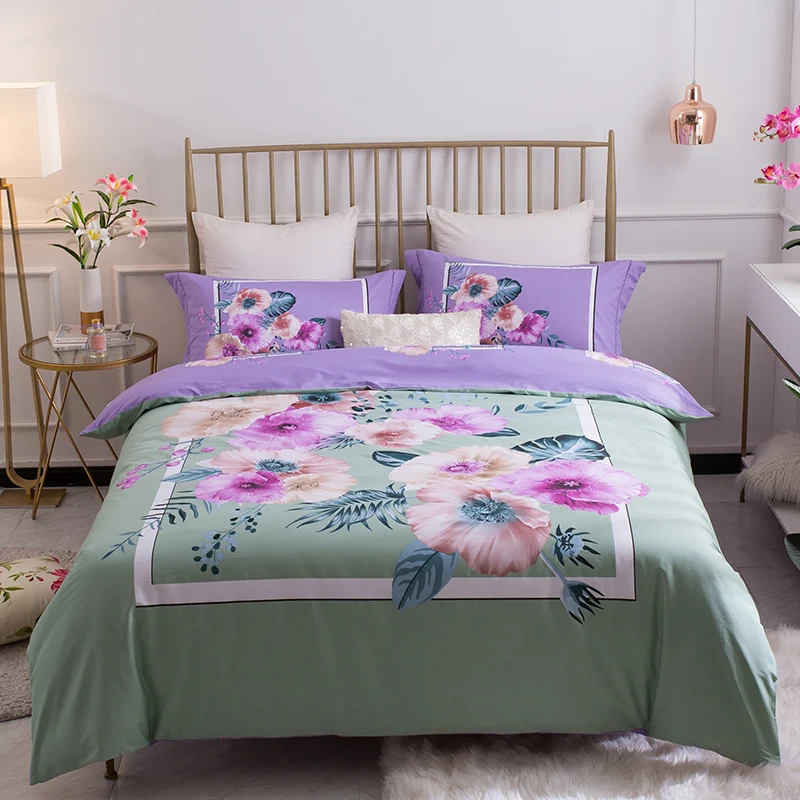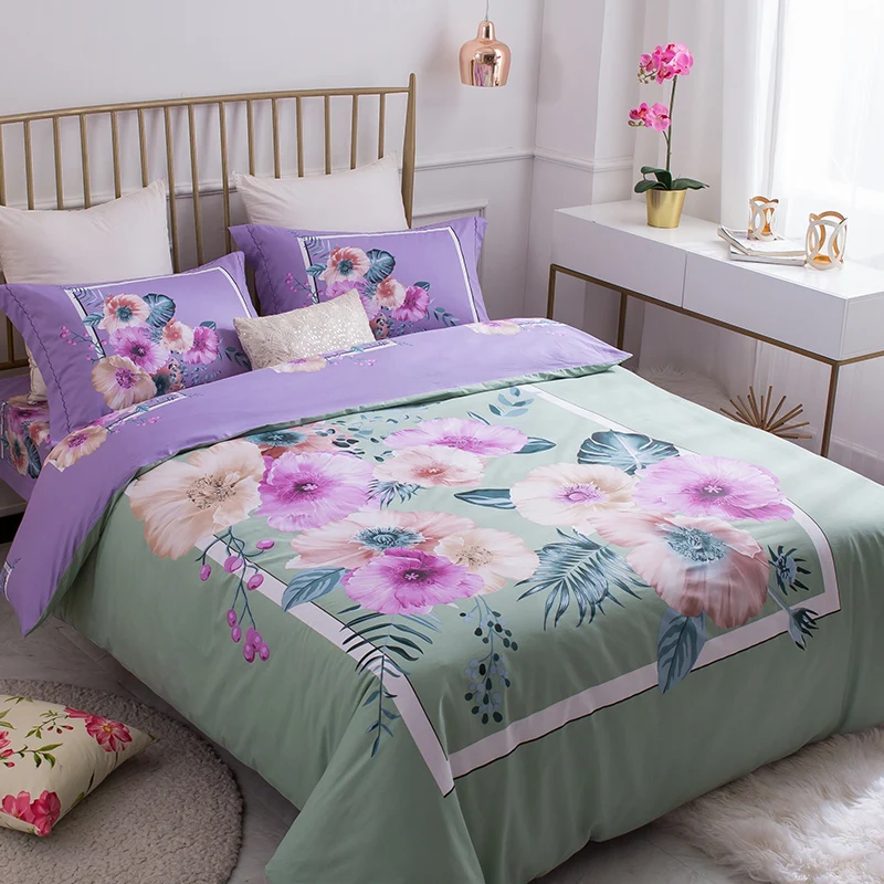 Hot Product Twilight Flower Garden 100% Cotton Bedding Set Printed Duvet cover set Bed Sheet Fitted Sheet Pillo